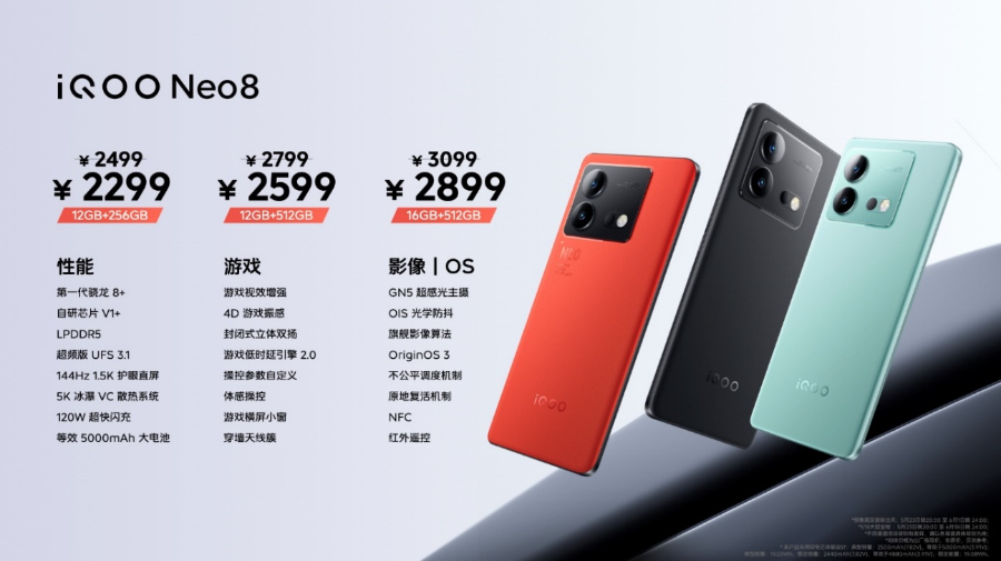 5月23日,iQOO Neo8系列正式发布。iQOO Neo8 Pro搭载天玑9200+旗舰芯片,采用第二代台积电4nm制程和新一代ARM V9架构,拥有3.35GHz X3超大核以及3.0GHz A715大核。此外,全系标配16GB LPDDR5X,最高可选512GB UFS4.0,带来更强性能。