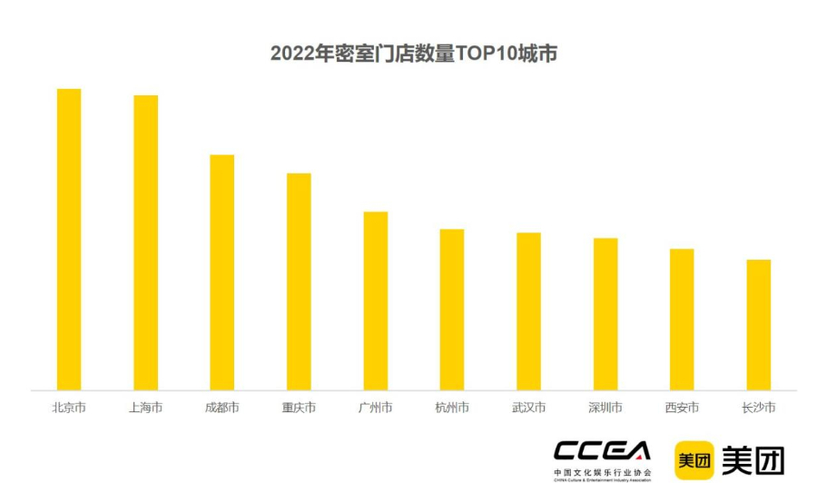《2022年剧本娱乐行业发展报告》,北京、上海、成都包揽密室、剧本杀门店数前三名,重庆居第四位。