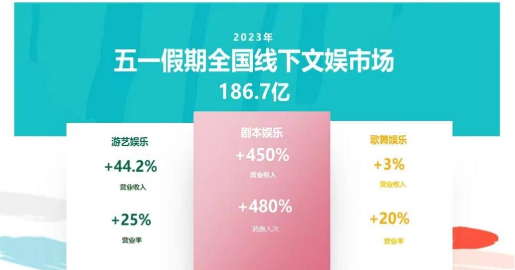 5月22日,中国文化娱乐行业协会联合美团研究院发布《2022年剧本娱乐行业发展报告》(简称《报告》)。《报告》显示,2023年第一季度,剧本娱乐市场规模环比增长47%,刚过去的“五一”假期,剧本娱乐经营场所营业收入同比增长450%,有超过400万人次参与消费体验。