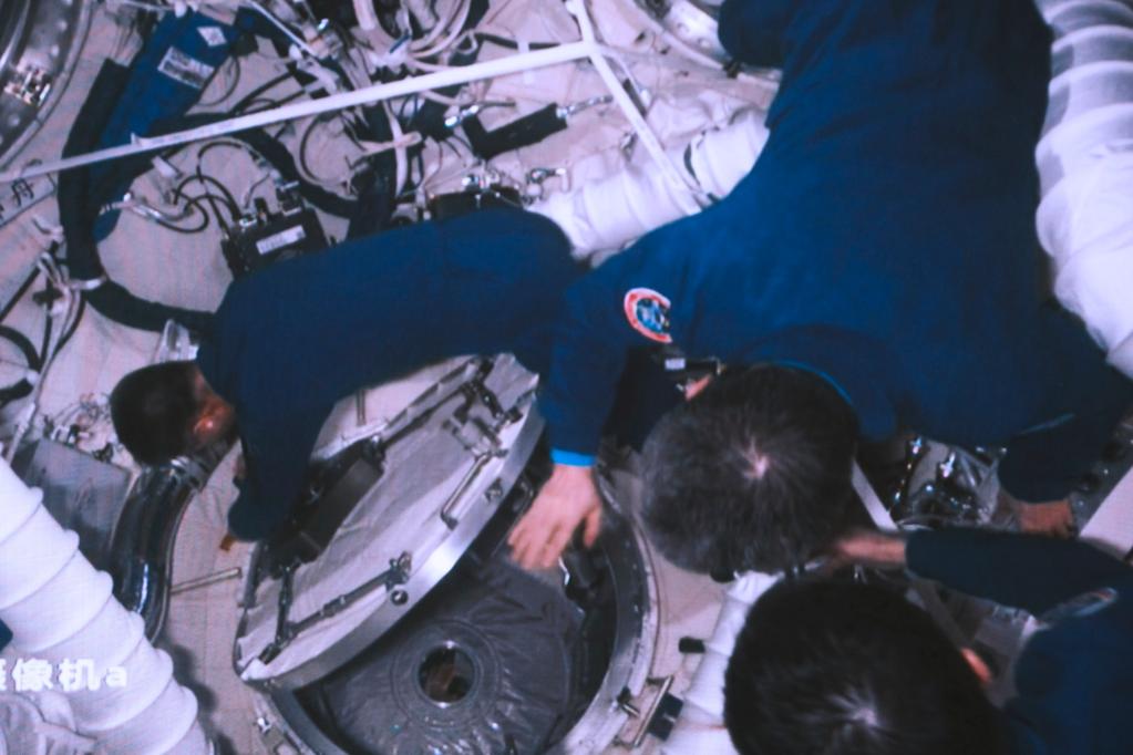 5月30日在北京航天飞行控制中心拍摄的神舟十五号航天员乘组打开天和核心舱气闸舱径向舱门并向神舟十六号航天员乘组挥手致意的画面。 据中国载人航天工程办公室消息,在载人飞船与空间站组合体成功实现自主快速交会对接后,神舟十六号航天员乘组从飞船返回舱进入轨道舱。5月30日18时22分,翘盼已久的神舟十五号航天员乘组顺利打开“家门”,欢迎远道而来的神舟十六号航天员乘组入驻“天宫”。随后,两个航天员乘组拍下“全家福”,共同向牵挂他们的全国人民报平安。 新华社记者 李杰 摄pagebreak