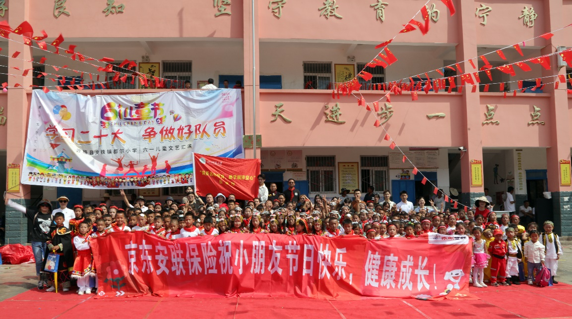 6月1日儿童节当天,京东安联保险携手四川师范大学大学生艺术团、成都市京剧研究院发起“情系普格教育,助学润泽童心”公益行活动,精心组织筹备了一台展示中国传统文化之美的文艺联欢会,并为留守大山的夹铁镇都尔小学孩子们带来了课外读物、学习用品及生活用品等爱心物资。活动现场,京东安联保险还联合接力出版社为全校的同学发放了六一节日礼包,包含素描本、自然观察本等,希望孩子们能够不断认识更大的世界,也通过自己的双手去描绘美好的明天。