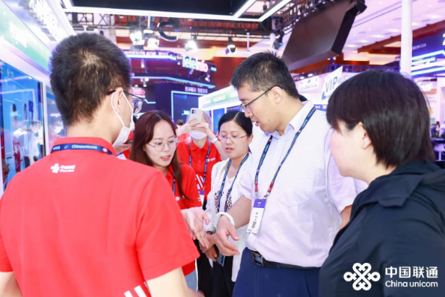中国联通携多项创新成果亮相双碳及信息无障碍展区。中国工程院院士邬贺铨亲临双碳及信息无障碍展区,饶有兴致地参观体验了导盲避障手环、畅听王卡、同声字幕眼镜、V智航等助残适老的数字化设备。