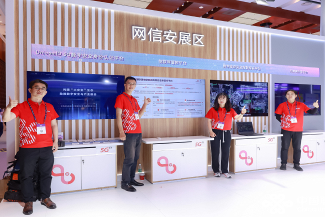 网信安展区,UnicomID 5G数字安全身份认证平台以“身份+数据”安全为核心,创新提出“SIM卡即可信身份,ICCID即公钥”理念,填补了我国在智能网联泛终端领域的技术空白,突破解决“低存储”终端安全瓶颈。