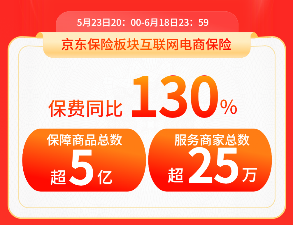 今年的京东618恰逢京东创业20周年,京东保险业务板块推出了力度空前的流量扶持政策和保险福利。截至活动收官,京东保险板块互联网电商保险总保费同比增速130%,保障商品总数超5亿件,助力超25万商家降本增效,在物流时效、价格保障等方面为商家和消费者带来了全链路升级体验。