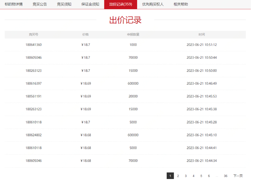 竞买人参拍流程简单便捷,只需要在网站或者手机上打开京东拍卖即可操作,“分拆处置”方式介绍、“标的物当前最高价”、“我的上轮出价”、“当前预计可获拍数量”等信息均直接在竞拍页面显示,方便查阅了解。