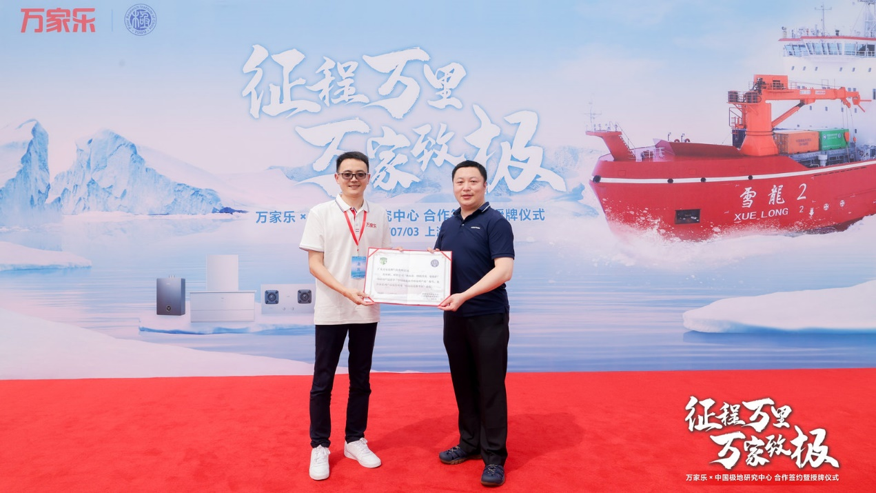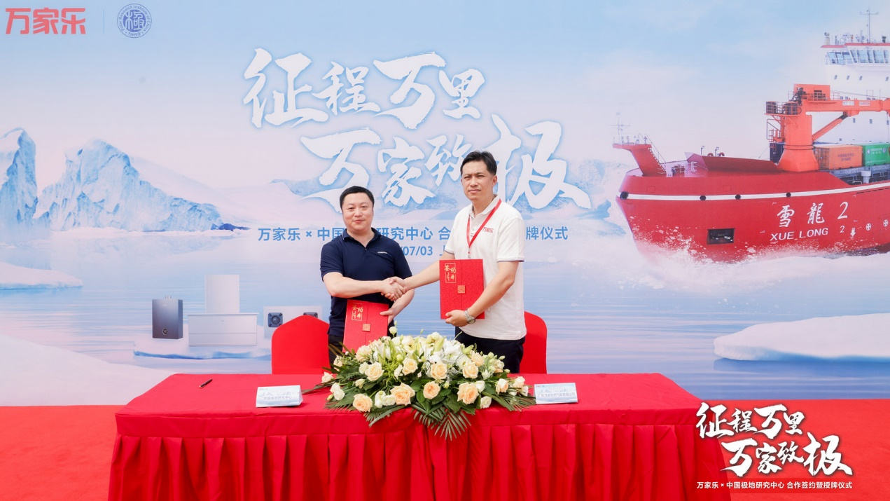 7月3日,“征程万里、万家致极”——万家乐与中国极地研究中心合作签约暨授牌仪式在上海雪龙路中国极地考察国内基地举行。