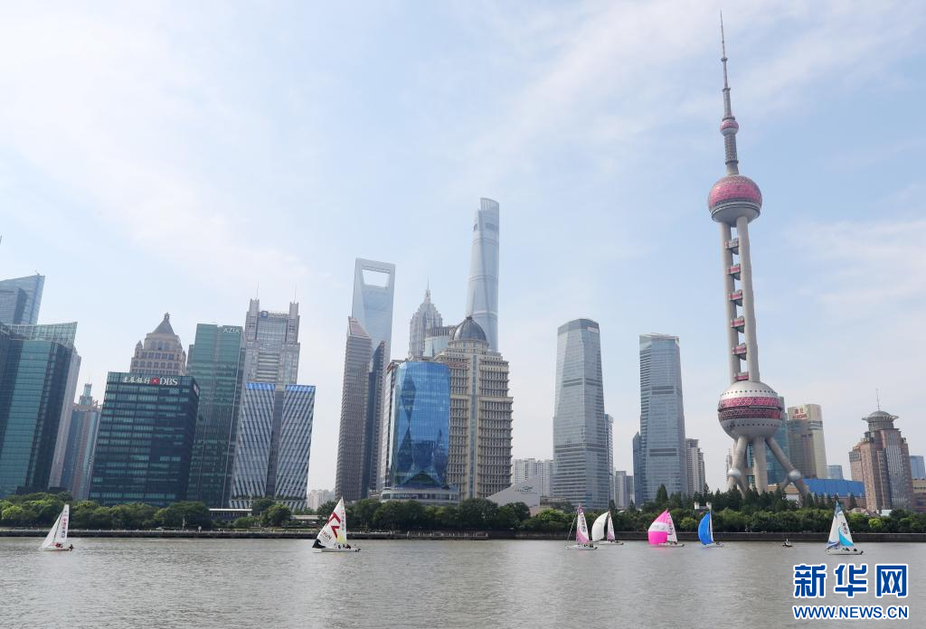 7月11日,上海在黄浦江上举行帆船巡游活动,庆祝中国航海日。