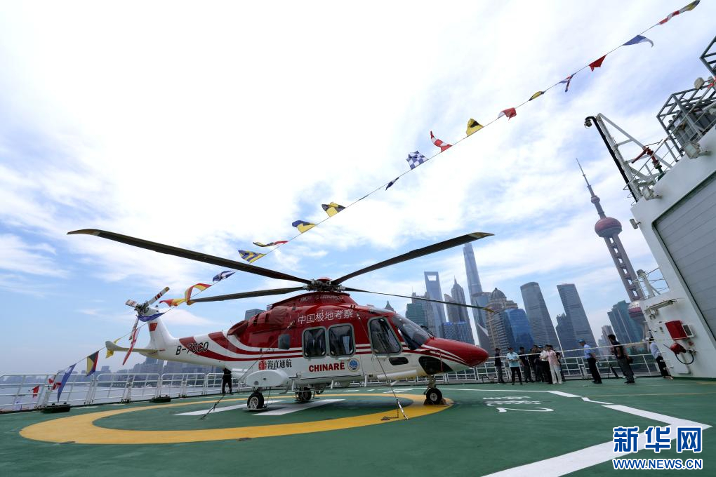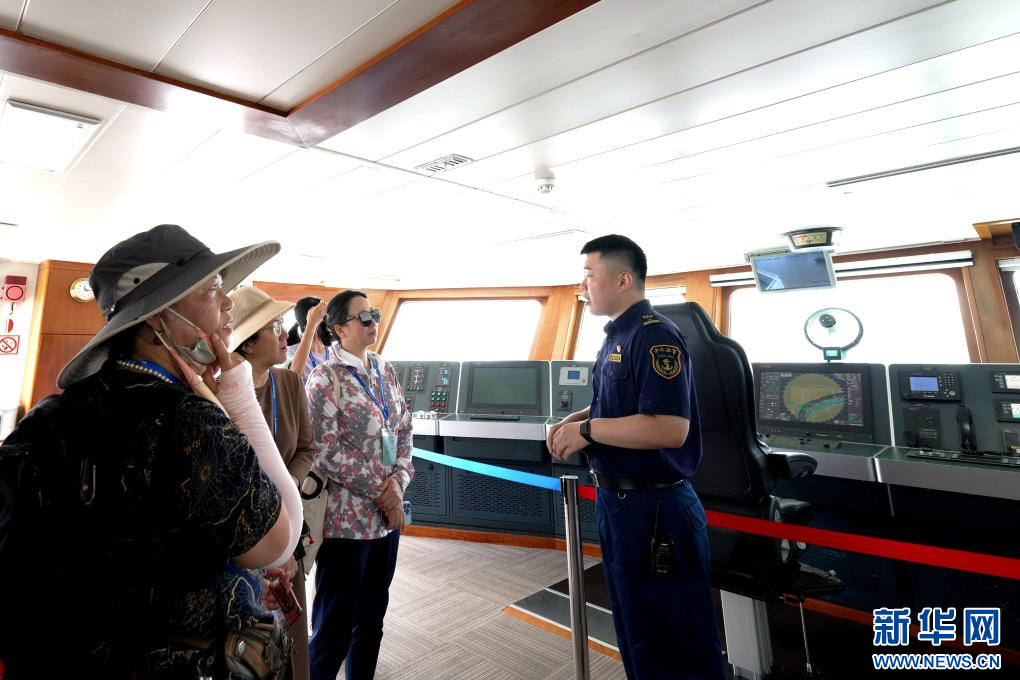 7月11日,在上海港国际客运中心码头,海事巡航救助船“海巡01”轮船员向公众介绍船舶知识。