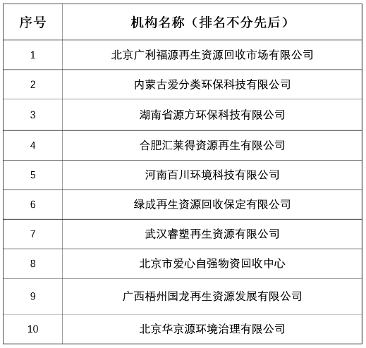 新增10家餐盒回收合作机构名单