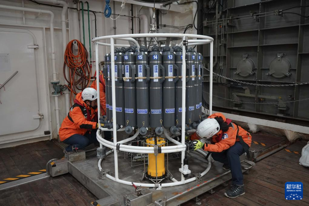 7月22日,中国第13次北冰洋科学考察队进行大洋作业演练,CTD(温盐深多参数海洋观测系统)采集海水样品完毕,队员用淡水对其进行清洁。