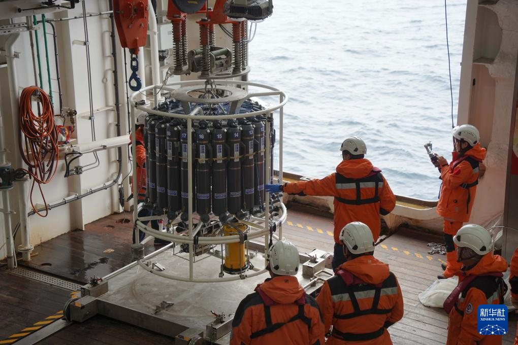 7月22日,中国第13次北冰洋科学考察队进行大洋作业演练,这是刚刚被布放入海的CTD(温盐深多参数海洋观测系统)。