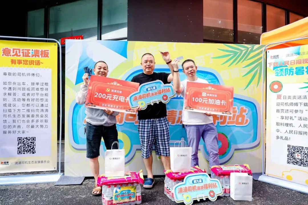图组为:滴滴党委、滴滴加油、小桔充电为司机准备的夏日礼品。