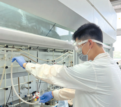 北京市第四中学学生张子鸣在北京师范大学有机化学实验室做实验。