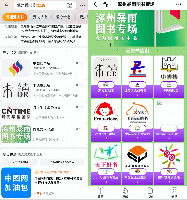 8月4日,淘宝在全网率先上线“涿州图书专场”,助力100多家受灾商家“回血”