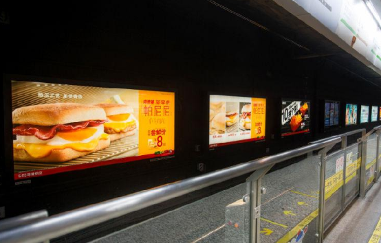 如何抓住乘客的眼球,是地铁媒体一直在思考的事情。目前,投入运营的隧道视频显示技术主要有两种:胶片成相技术和LED动态显示技术。胶片成相技术相对简单,利用灯箱结构,当地铁通过灯箱时,乘客能看到动态的画面,但弊端也同样明显,投入成本大、设备要求强光源、更换广告需进入地铁现场等,不利于推广且还会影响地铁驾驶员驾驶安全。相比之下,LED动态显示技术发展成熟,成本相对较低、分辨率高、更换广告便捷,明显的优势使其成为广告商的新宠。