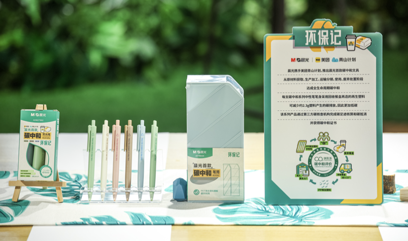 回收的餐盒经过重新“改造”利用,可以变成手机壳、单车挡板甚至服装饰品等日用品。据悉,今年青山计划联合晨光,将餐盒集中打包后运往塑料再生处理工厂,经过破碎清洗、熔融造粒等过程后,共同打造了碳中和文具,其中每支中性笔可减少约2.3克原生塑料使用。