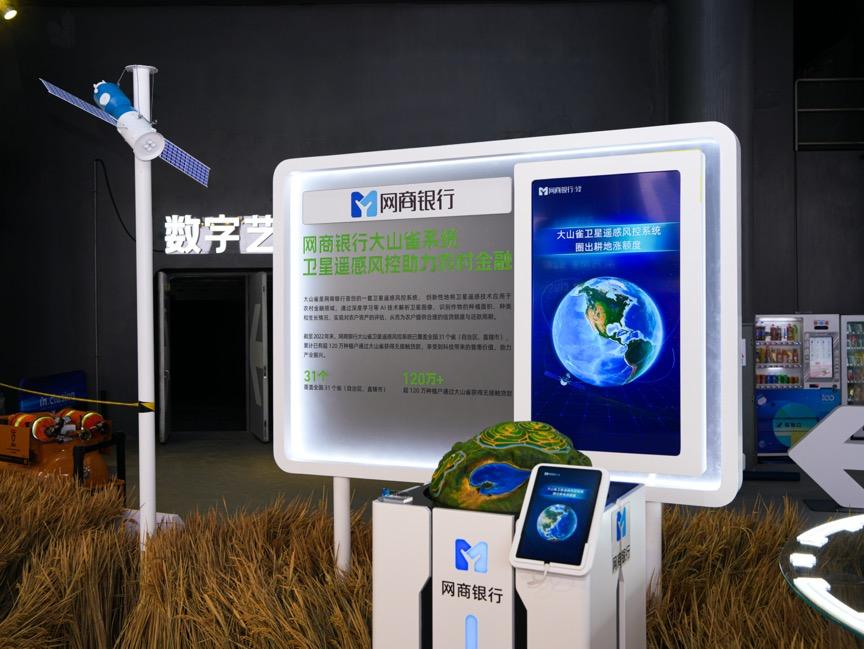 数字技术又如何助力乡村振兴,帮助解决农人难题?网商银行在现场带来了“大山雀”卫星遥感风控系统,原本最困扰农户的贷款问题,通过这项技术就可以得到解决。卫星识别田地的农作物面积、作物类型、长势如何,以此为贷款提供依据,同时结合数字化风控模型,从而为农民提供信贷支持。截至目前,这项技术已经覆盖全国31个省市自治区,服务了超过120万种植户。