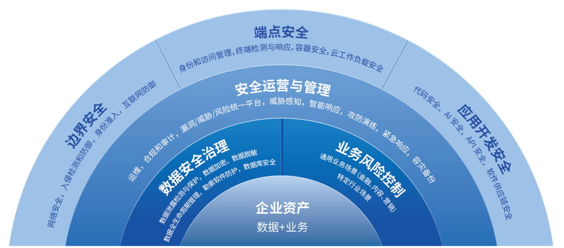 第一,拥抱智能化时代,需要建立发展驱动的安全建设理念。大模型会让各行各业加速与数据交互,智能化、数据资产化将成为主要特征。企业安全建设需要围绕数据和业务展开,以支撑企业在智能化时代发展战略,对齐未来5-10年的发展目标。
