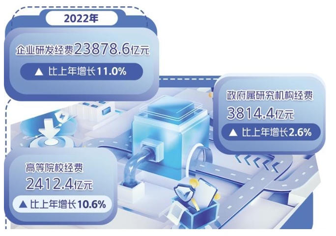 “财政科技支出保持稳定增长,有力保障了基础研究、关键核心技术攻关等资金需求。”张启龙说,政府支持科技创新的方式更加多元,2022年享受研发费用加计扣除减免税和高新技术企业减免税政策优惠的规上企业分别比上年增长16.3%和11.7%,有效激励了企业加大研发投入。