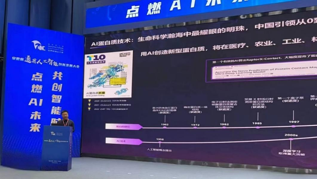 9月20日,由工业和信息化部、国务院国资委、中国工程院、安徽省人民政府等共同主办的2023世界制造业大会在合肥召开,清华大学智能产业研究院(AIR)卓越访问教授许锦波携自主研发的AI蛋白质生成大模型NewOrigin(中文名“达尔文”)亮相。会上,汇聚各界人工智能领域高端人才、旨在推进多领域融合和协同创新的“AI百人会”成立,许锦波受聘任副会长。