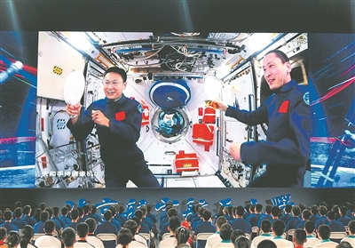 9月21日15时48分,“天宫课堂”第四课在中国空间站开讲,神舟十六号航天员景海鹏、朱杨柱、桂海潮为广大青少年带来一场精彩的太空科普课,这也是“天宫课堂”首次在梦天舱内举行。来自北京、内蒙古阿拉善盟、陕西延安、安徽桐城及浙江宁波5个地面课堂的约2800名学生代表参加了现场活动。