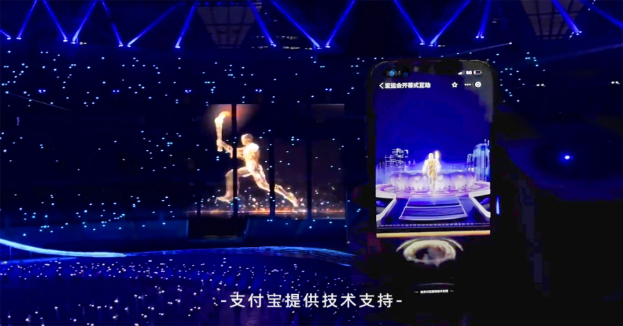 9月23日晚,杭州第19届亚运会开幕式精彩呈现,向世界奉献了一场精彩绝伦的视觉盛宴,数实融合成为最大亮点。作为亚运官方合作伙伴、技术服务方的支付宝用技术助力开幕式首创了数实融合、人人可参与的两大经典时刻:超1亿数字火炬手跑出支付宝App汇聚大莲花点燃主火炬,实现全球首个数字点火仪式;万名观众在现场通过支付宝放飞许愿灯召唤吉祥物,实现全球首次大型演出AR互动创举。