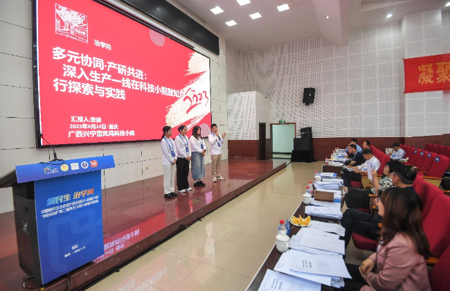 广西兴宁富凤鸡科技小院学生回答评委问题