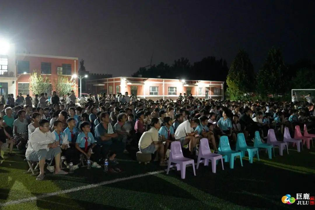 在薄庄小学的操场上,家长和孩子组成了“观影团”