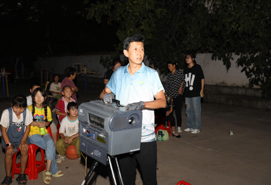 每天下午3点,村里的放映员就开始提前装车,电影放映机、搭架子、几十个小板凳把面包车塞得满满的。接着开一个多小时山路到放映点搭建设备。而每次放映员们的到来,都让老乡们有了新的期待。