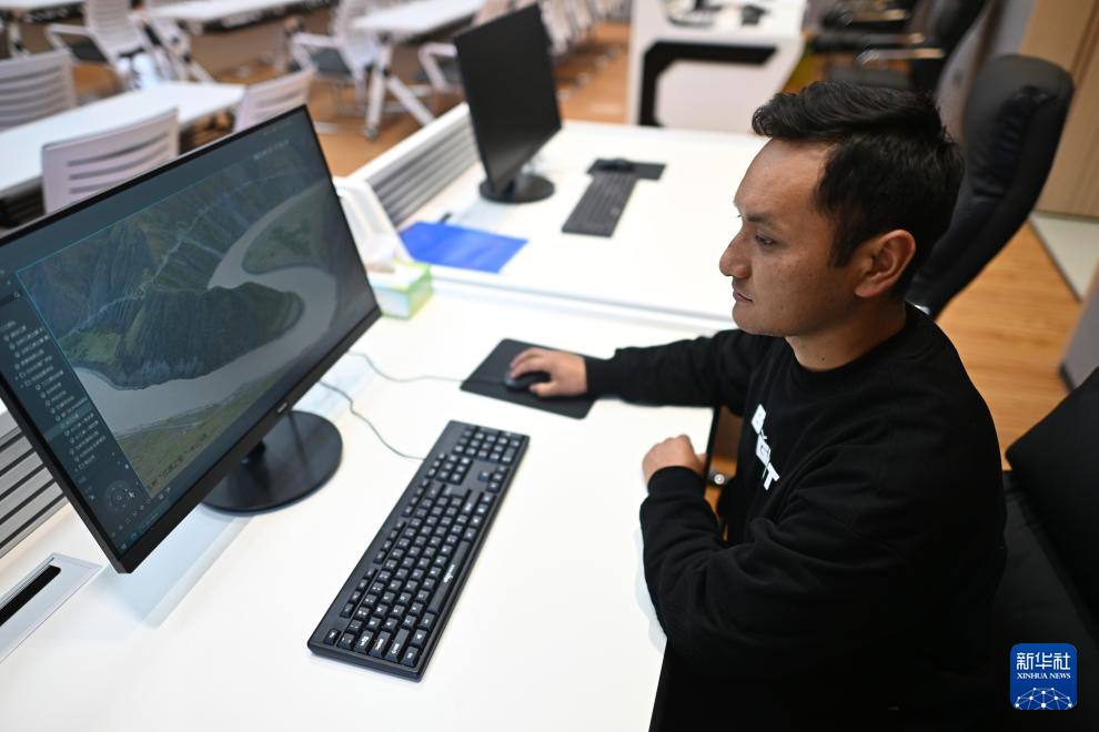9月22日,玉树州生态环境局宣教信息科工作人员曲达朋措展示长江源流域当曲的实时监控画面。