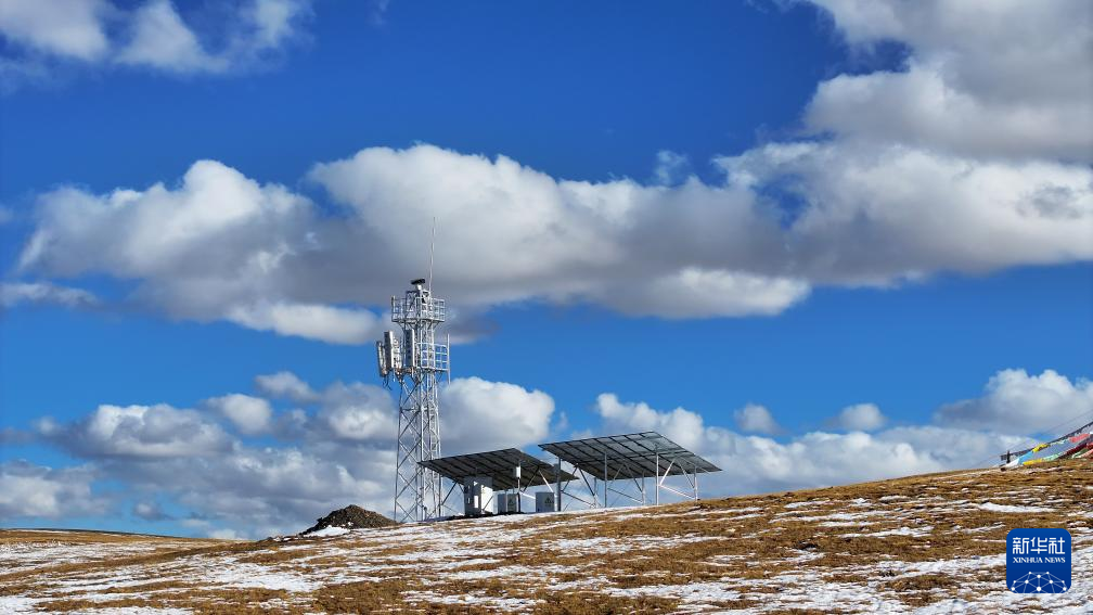这是9月20日在玉树州曲麻莱县黄河源流域约古宗列曲拍摄的中国移动5G基站(无人机照片)。