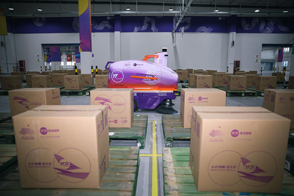 9月13日,无人扫地机在杭州亚运会物流中心内工作。新华社记者 江汉 摄