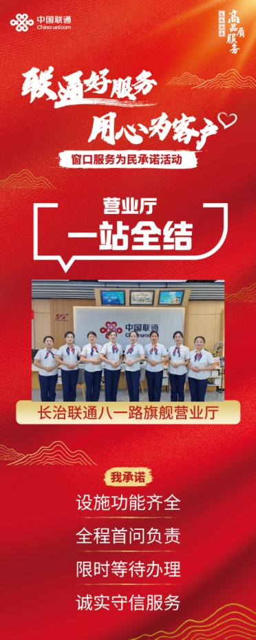 “敢于争先,脚踏实地,目标高远”,八一路旗舰营业厅公开承诺服务标准,始终以追求卓越、创新服务的拳拳之心,用真情和行动架起与客户零距离沟通的“连心桥”。