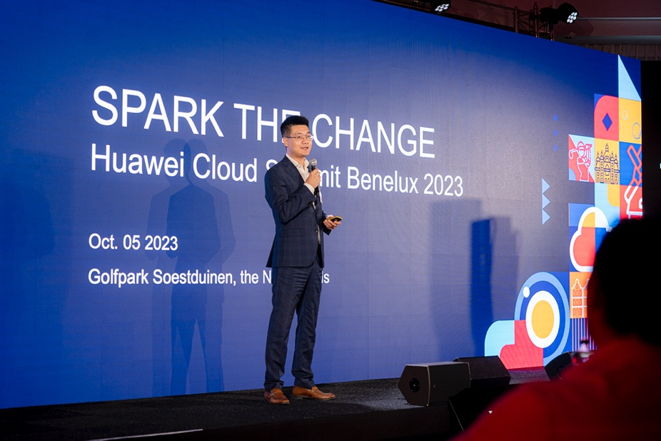 华为西欧多国首席执行官宋文琦在近日举行的首届“华为云荷比卢峰会”上致辞