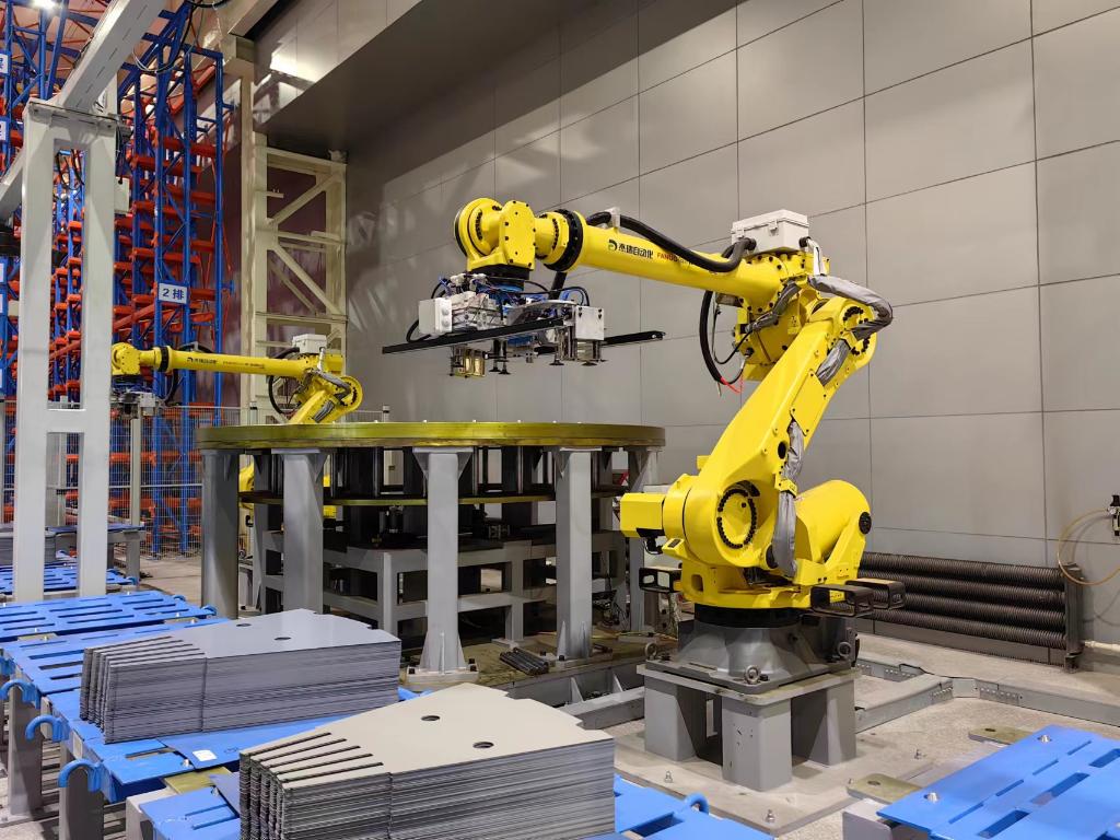 在哈尔滨电气集团有限公司汽轮机厂,汽轮发电机冲片自动叠装车间生产线上,黄色的机器臂“上下翻飞”、精准装配,展现了老工业基地“数实融合”的生动实践。