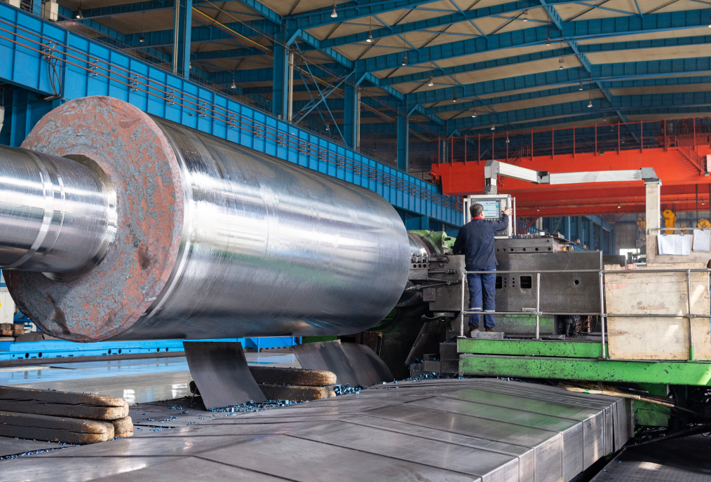 中国一重集团有限公司轧电车间机器轰鸣,一个个数十米长的巨大毛坯件在机床上按设定程序转动,最终磨削成图纸上的样子,成为大型船舶、水电站的基础构件。