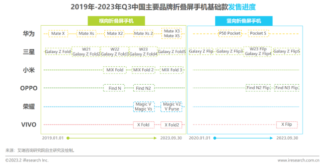 折叠屏已经成为了手机行业的高潜赛道。据艾瑞咨询《2023年中国折叠屏手机市场洞察报告》显示,2023年1月-8月中国折叠屏存量用户累计增长了68.8%,市场大盘增长堪称迅猛。在机型使用上,发展时间较早的横向折叠屏机型凭借创新性的大屏视觉体验,已占据较高市场份额。