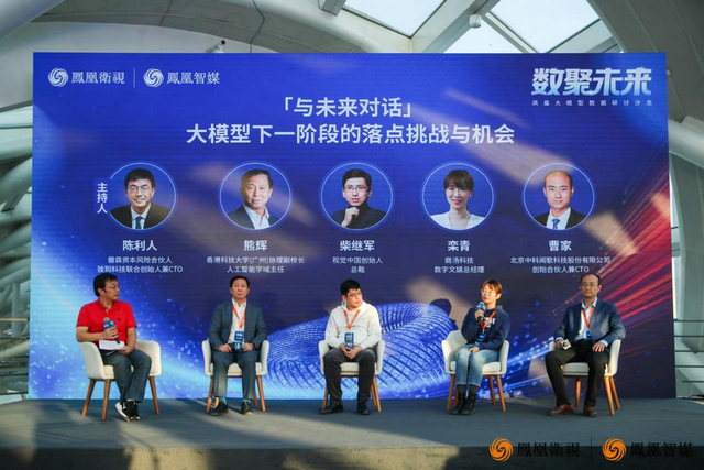 除主旨演讲外,香港科技大学(广州)协理副校长熊辉,视觉中国创始人、总裁柴继军,商汤科技数字文娱总经理栾青,中科闻歌创始合伙人兼CTO曹家参加了《“与未来对话”大模型下一阶段的落点挑战与机会》圆桌论坛,各位来宾就自身领域发表了精彩见解,磐霖资本风险合伙人、独到科技联合创始⼈兼CTO陈利人担任主持人。