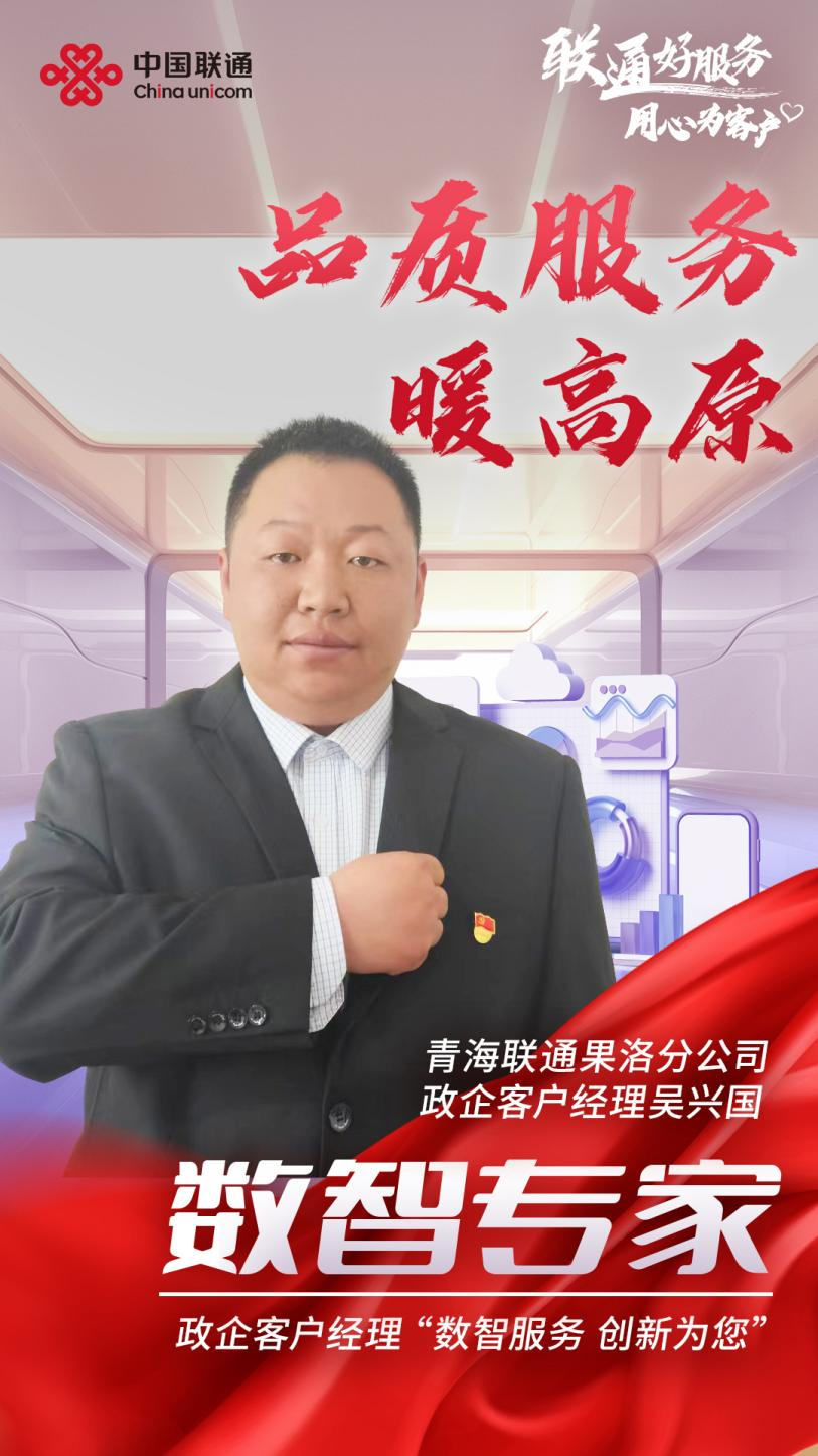 吴兴国2007年毕业于贵州大学电子信息专业,同年9月进入青海联通工作,2010年加入中国共产党。2017年至今,中国联通青海省分公司积极响应省委省政府对扶贫工作的要求,选派吴兴国担任果洛州久治县哇尔依乡达尕村第一书记,在精准扶贫工作中努力带领全村牧民群众脱贫致富,同时不忘政企客户经理的本职工作,以认真负责的工作态度和良好的职业道德,默默奉献自己的青春与热血。