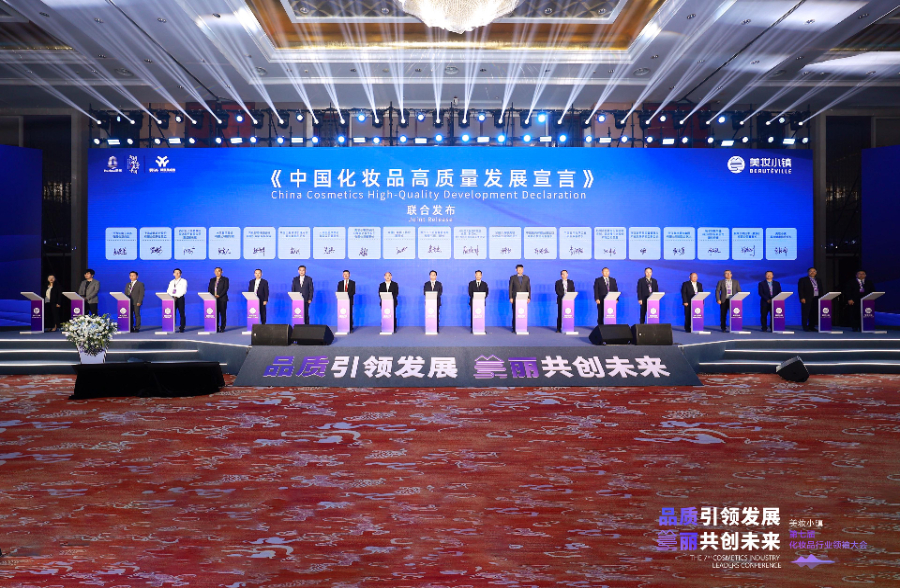 会上,行业组织、领军企业、高校及科研院所等共同发表《中国化妆品高质量发展宣言》,从“严守政策法规,加强行业自律” “坚持科技引领,建立创新机制” “聚力数字驱动,做强美妆‘智’造” “勇担社会责任,走绿色低碳之路” “推动合作共赢,奔赴美好未来”5个方面吹响中国化妆品产业高质量发展集结号。