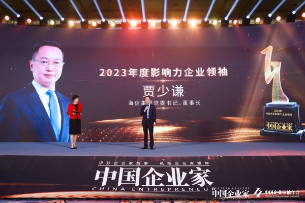 2023(第二十一届)中国企业领袖年会于12月9日—10日在北京举行,海信集团党委书记、董事长贾少谦与比亚迪、华润集团、宁德时代、百度等25家企业负责人一同获评“2023年度影响力企业领袖”,并受邀在年会闭幕式发表主旨演讲。