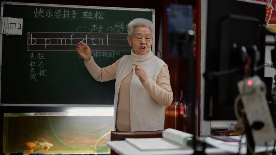 74 岁的杨维云当了50年老师,从去年开始,她有了最特殊的一批学生,他们来自全国各地,年龄从学龄前跨到72岁。这些学生不识字或不会拼音,生活因此受到了很多阻碍。杨维云开设“喜洋洋拼音课堂”直播间,教授拼音、识字。