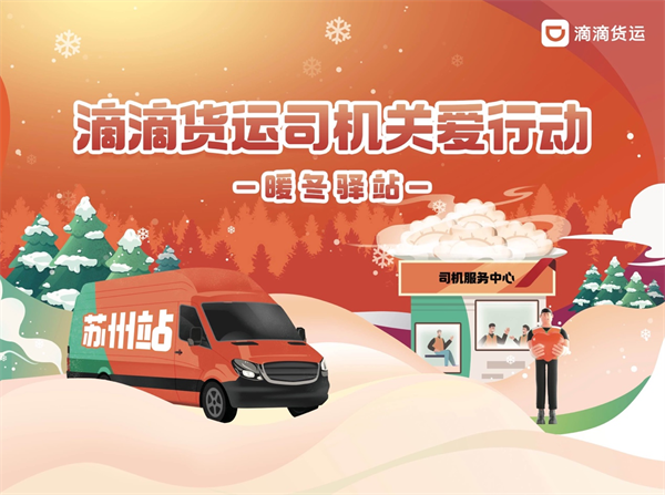 刚过去的这个周末,全国气温骤降。为感谢广大货运师傅们在寒冬为城市物流运转所做的努力和贡献,滴滴货运于12月16日启动“司机关爱行动——暖冬驿站”活动,首期邀请了苏州的滴滴货运司机,在送货间隙回到司机驿站休息取暖,并为大家准备了一顿热汤水饺午饭和暖冬礼包。本周起,该活动将陆续在青岛、杭州、上海等城市落地。