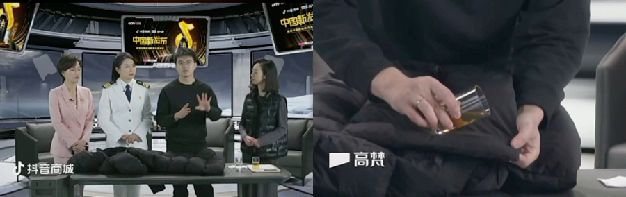 以甲板和冰面作业必需的防寒服为例,如今,“雪龙号”极地航海装备就来自中国自己的高端鹅绒服品牌高梵,应用中科蓄热技术在内的多项原创奢暖科技,帮助科考队员在极寒、强风、潮湿的极端环境中活动自如。中国品牌的不俗表现,值得让更多人看见。抖音商城“抖in新风潮 | 中国新发布”联动央视网,一起打造“以中国科技,护雪龙出征”高梵极地航海装备直播发布会,见证我国科考装备的升级。根据发布会上最新中外科考装备的对比测试结果,高梵黑金航海系列各项表现都十分优异,从保暖性到防风防水耐腐蚀性,都远超国际平均水平,并且重量也更加轻盈,帮助科考队员轻便化展开工作。