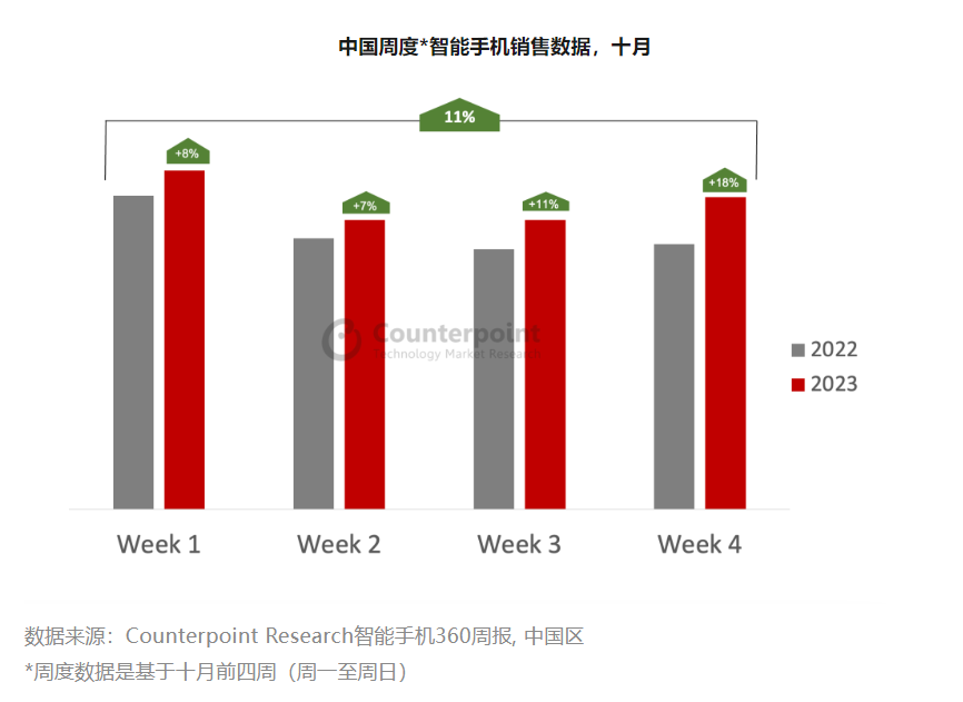 根据Counterpoint调研数据显示,全球智能手机销量在连续27个月同比下降后,今年10月份首次售出交易量(即零售额)同比增长5%。而IDC等第三方市场研究机构预测,2024年中国智能手机市场出货量将实现2021年以来首次同比增长。