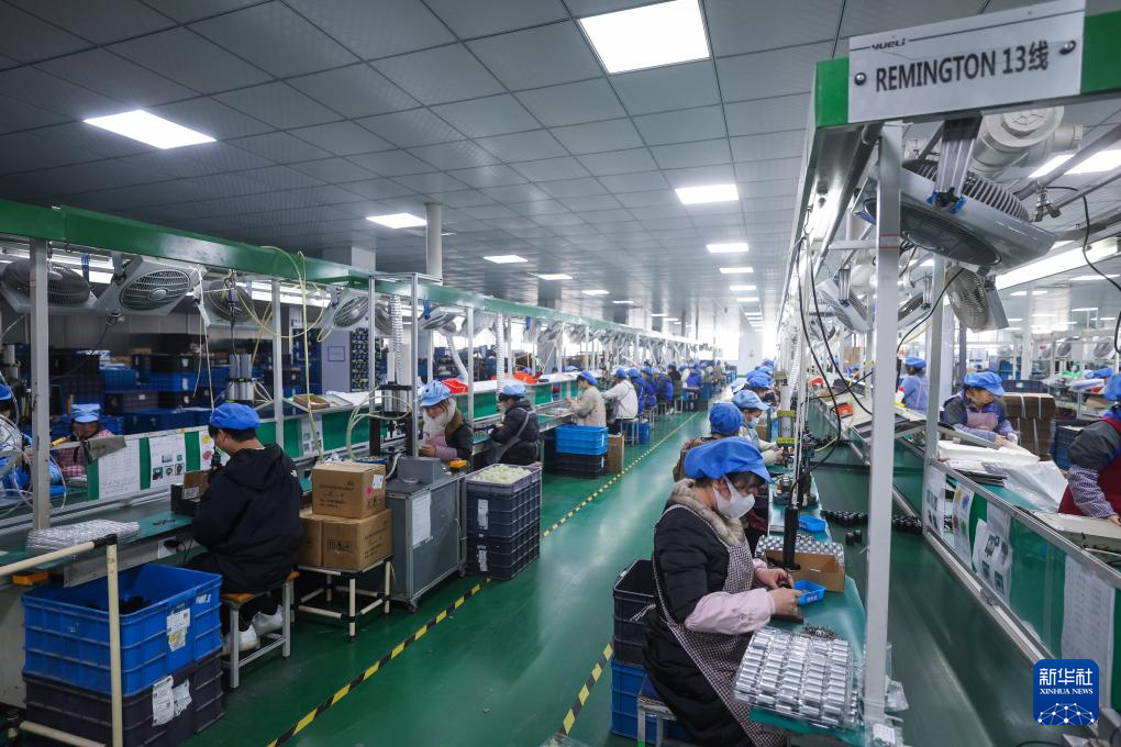 12月27日,在位于慈溪市周巷镇的月立集团有限公司装配车间内,工人们生产电吹风。该公司是一家专业生产电吹风、美发器、剃须刀、电熨斗等个人护理电器产品的制造商,是全球最大的电吹风制造工厂之一,电吹风年产量超1100万台,在行业内名列前茅。今年前三季度,该集团总营收增长10%。