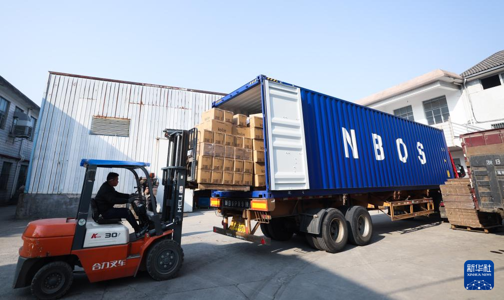 12月27日,浙江慈溪的浙江华光电器集团有限公司内,一批出口的小家电正在装车。今年以来,该企业出口保持了较好的态势,截至11月份,公司产值已达3亿元,与去年同比增长30%左右。