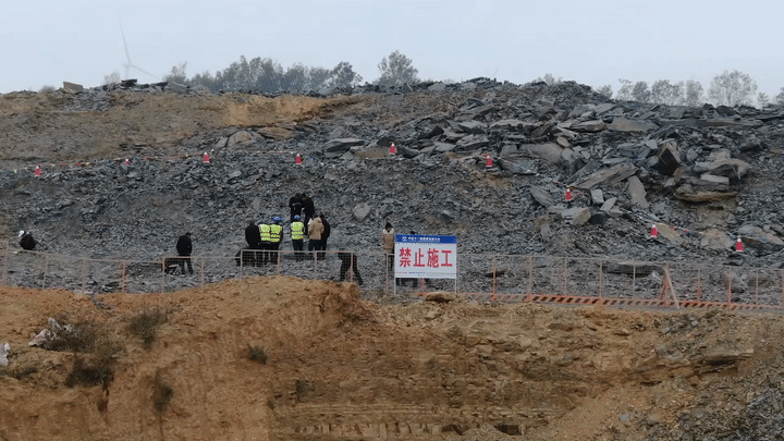 工作人员在发现化石的施工现场查看。新华社记者 陈欣波 摄