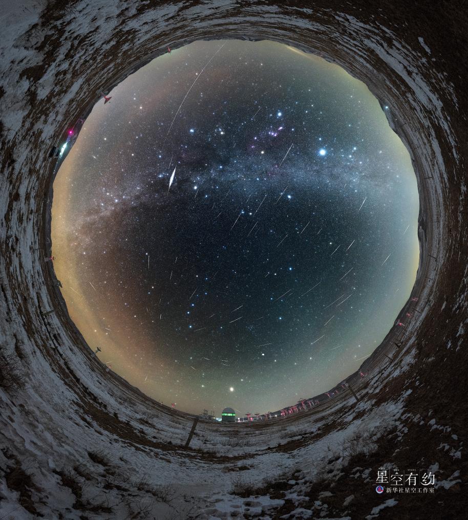北京星空摄影爱好者刘雪梅2022年1月3日在内蒙古明安图拍摄的象限仪座流星雨(多张叠加)。(本人供图)