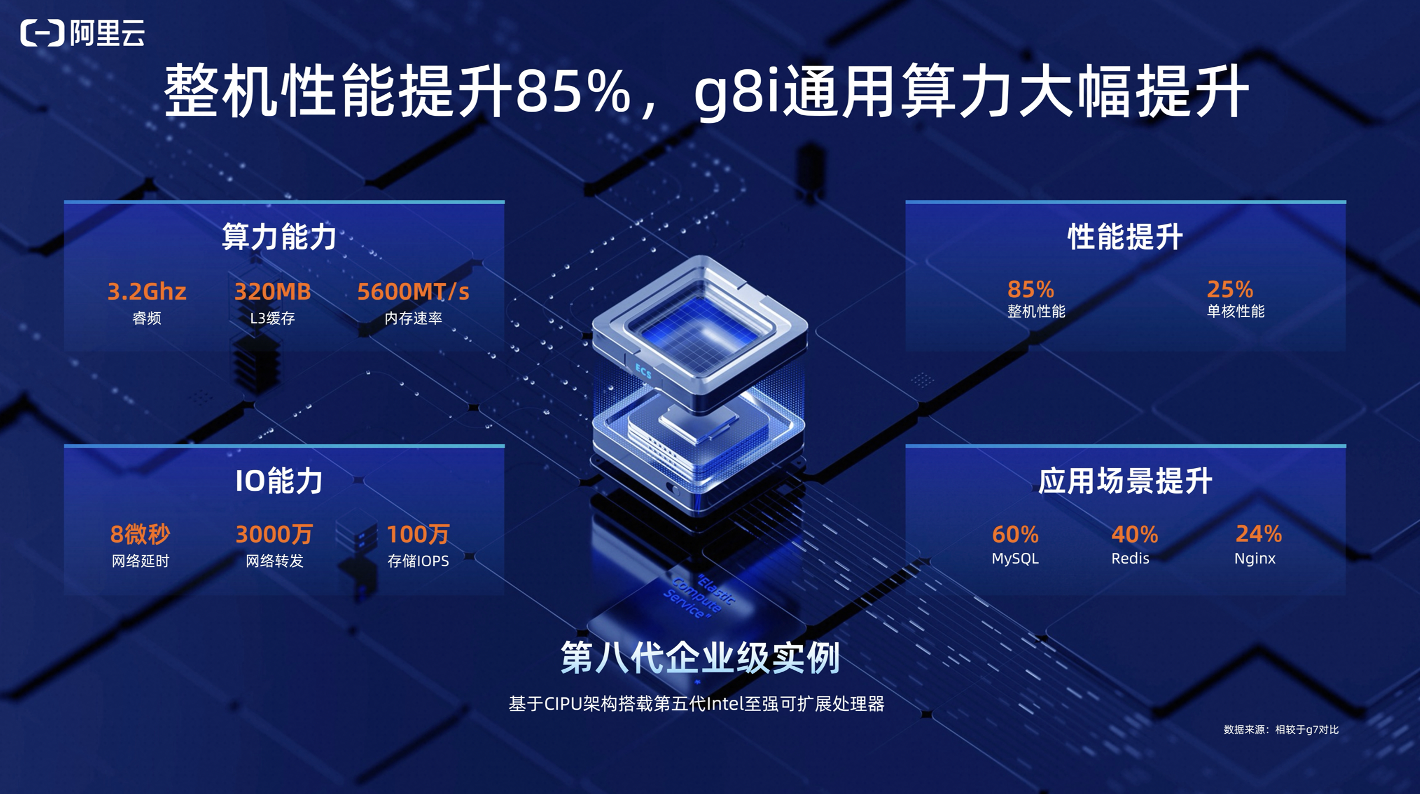 近日,阿里云宣布第八代企业级通用计算实例ECS g8i算力再升级,代号Emerald Rapids的第五代英特尔至强可扩展处理器,依托阿里云自研的「飞天+CIPU」架构体系,ECS g8i实例的整机性能最高提升85%,AI推理性能最高提升7倍,可支撑72B参数的大语言模型,帮助中小规模模型起建成本降低50%。同时新实例还提供了端到端安全防护,为企业构建可信AI应用提供强有力的隐私增强算力支撑。